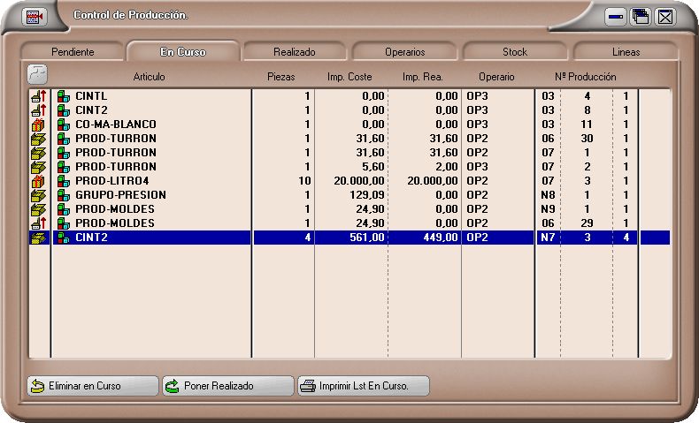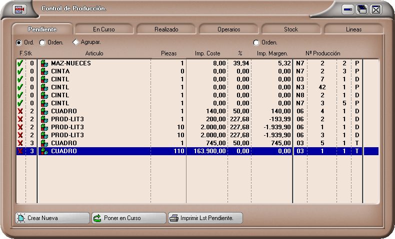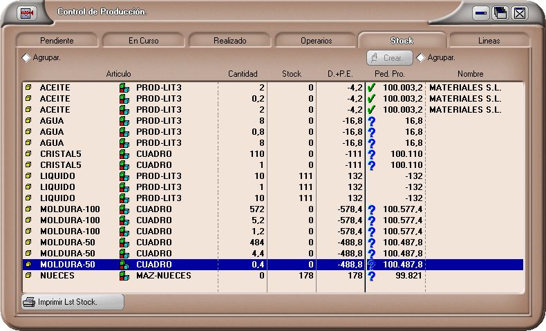 producción, stock disponible, pedidos a proveedor, operarios, etc