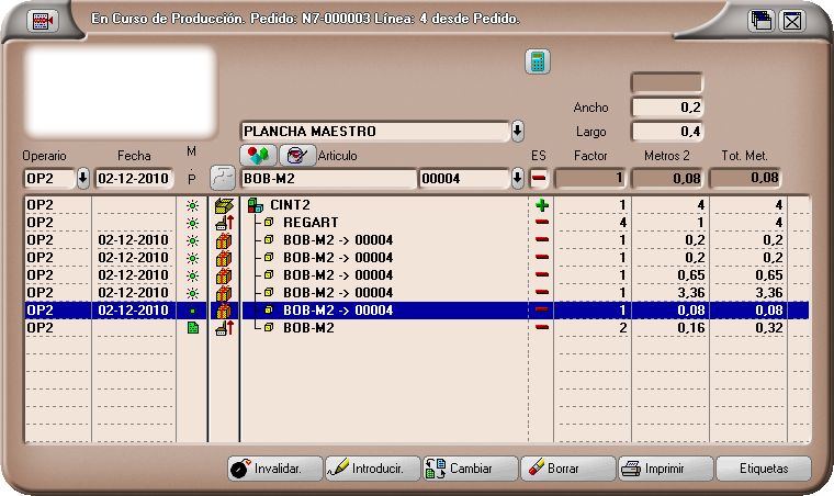 Detalle de la ventana con la ficha pendiente de produccion. |