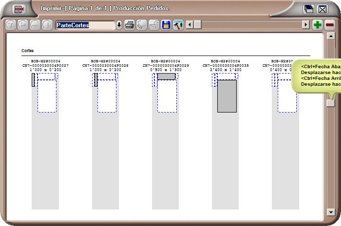 Detalle de la ventana de impresión de los cortes a realizar. |